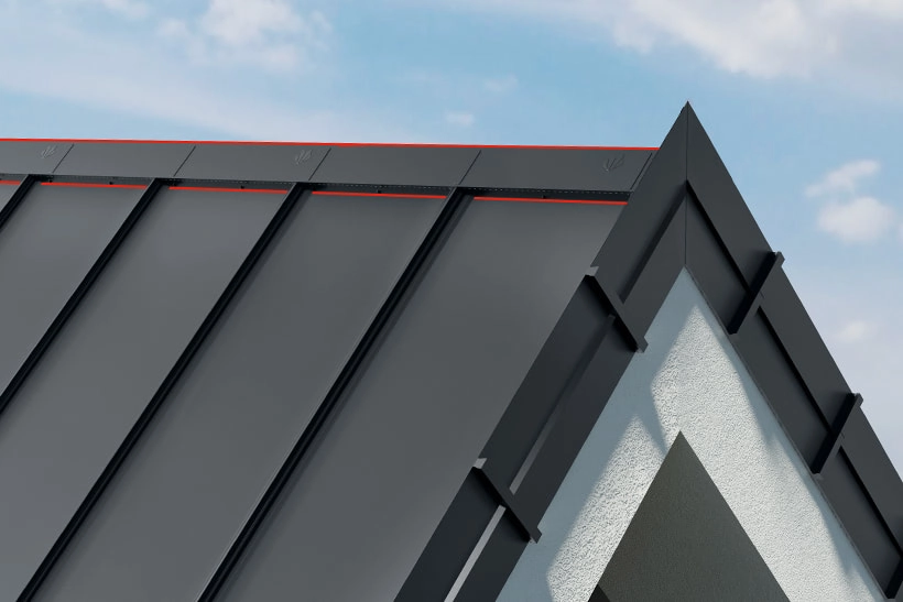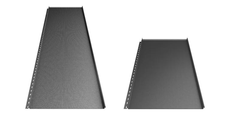 Az előkorcolt tetőlemez amint a nevében is benne van, előkorcolt állapotban készítjük, így felszereléskor egy könnyebb pattintással összeszerelhető. Ez a tetőpanel többféle héjazathoz, különböző típusokhoz is nagyszerűen megfelel, kedveltségét is részben ennek köszönheti. Letisztult, modern megjelenést kölcsönöz, a rejtett rögzítésnek köszönhetően egységes felületet képez.
