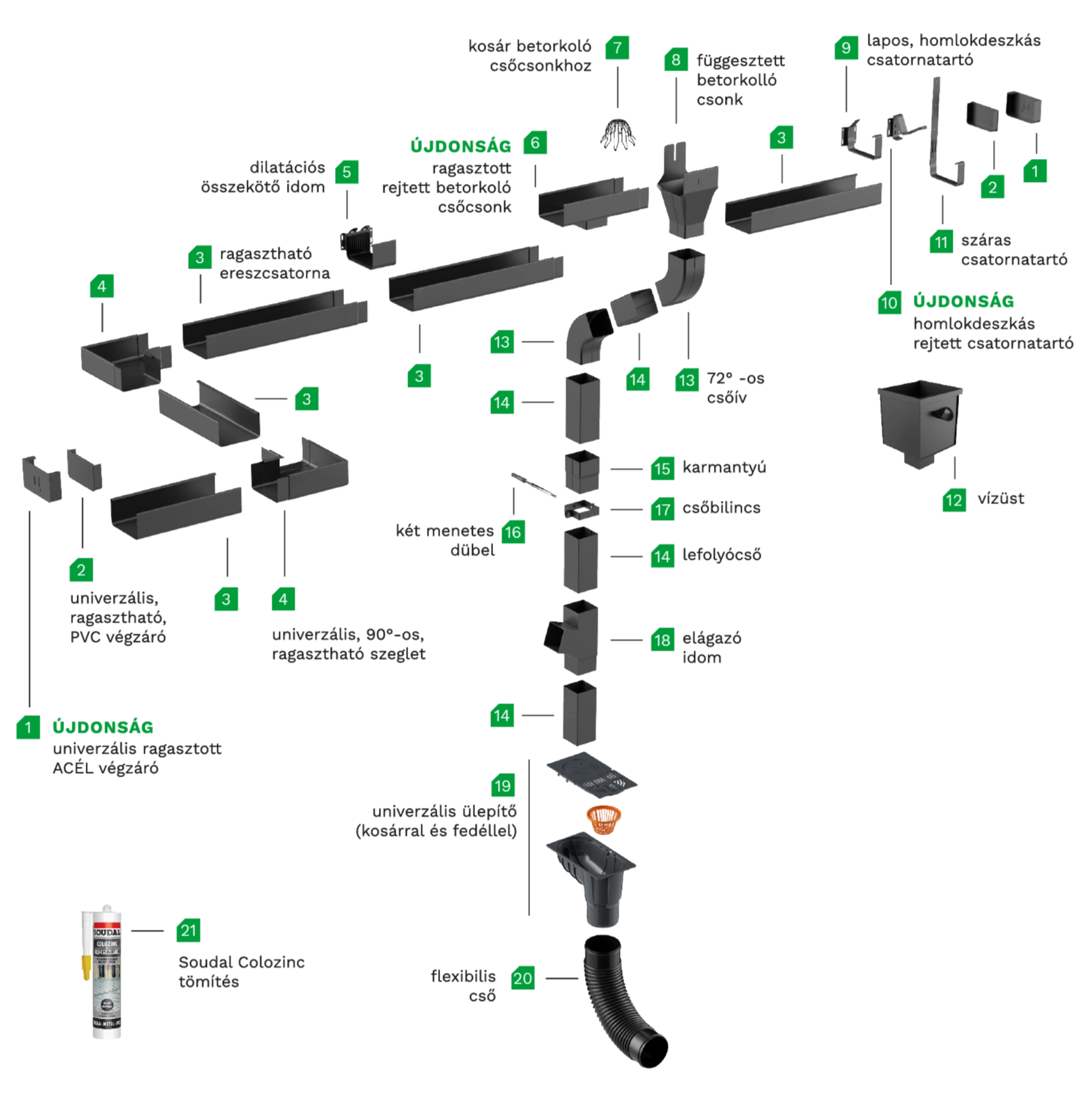 A Q STALYO PRO ereszcsatorna rendszert jó minőséget és a kedvező árat egyesíti magában, a legújabb építészeti trendeknek megfelelően. Modern és üzembiztos, jellemző tulajdonságai a minimalizmus és a szimmetria. A legjobb szakértőkkel folytatott együttműködésnek köszönhetően olyan ereszrendszert alkottunk, amely a legigényesebb ügyfelek igényeinek is megfelel.