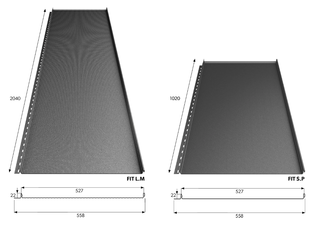 Megjelenése a sok évvel ezelőtti klasszikus tetőkre emlékeztet, melyeken a lemezeket, akárcsak a FIT paneleket, függőlegesen, váltakozva illesztették egymáshoz, ami egyedülálló vizuális hatást kelt.