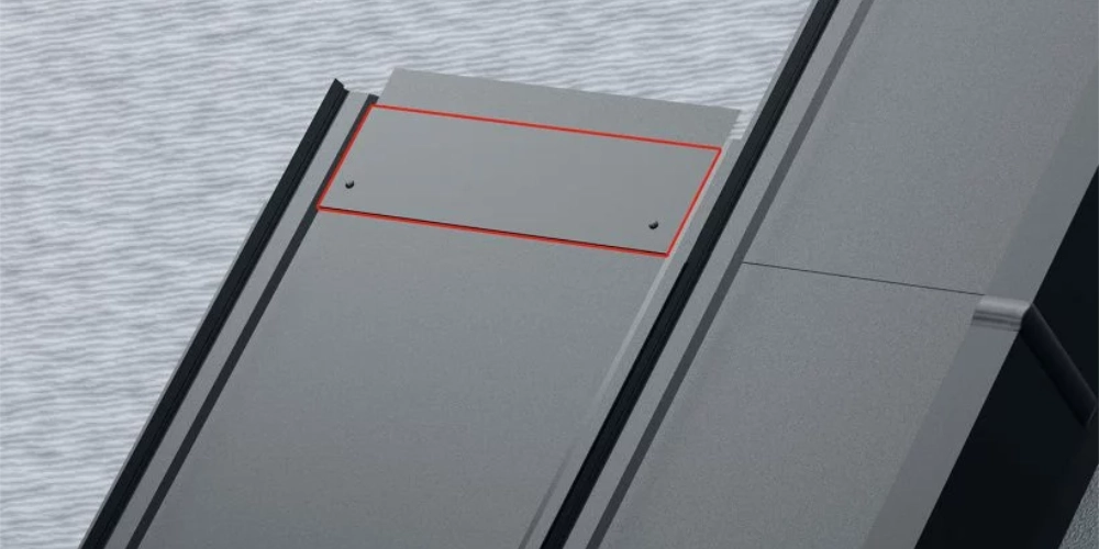 A panelek hosszirányú összekötését biztosító bádogos elem.