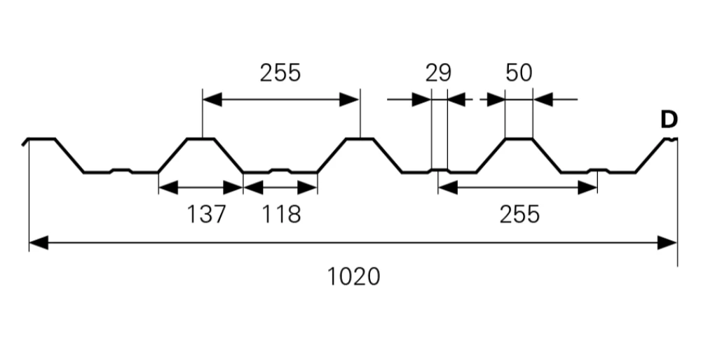 Tetőfedő (vízelvezető horonnyal) vagy homlokzati profil. Szerkezeti lemezként, mennyezetekhez vagy betonnal kiöntött zsaluzatként is alkalmazásra talál. Terhelhetősége lehetővé teszi az alátámasztási pontok közötti távolság megnövelését anélkül, hogy romlanának az elvárt szél- és hóterhelés átviteli paraméterek.